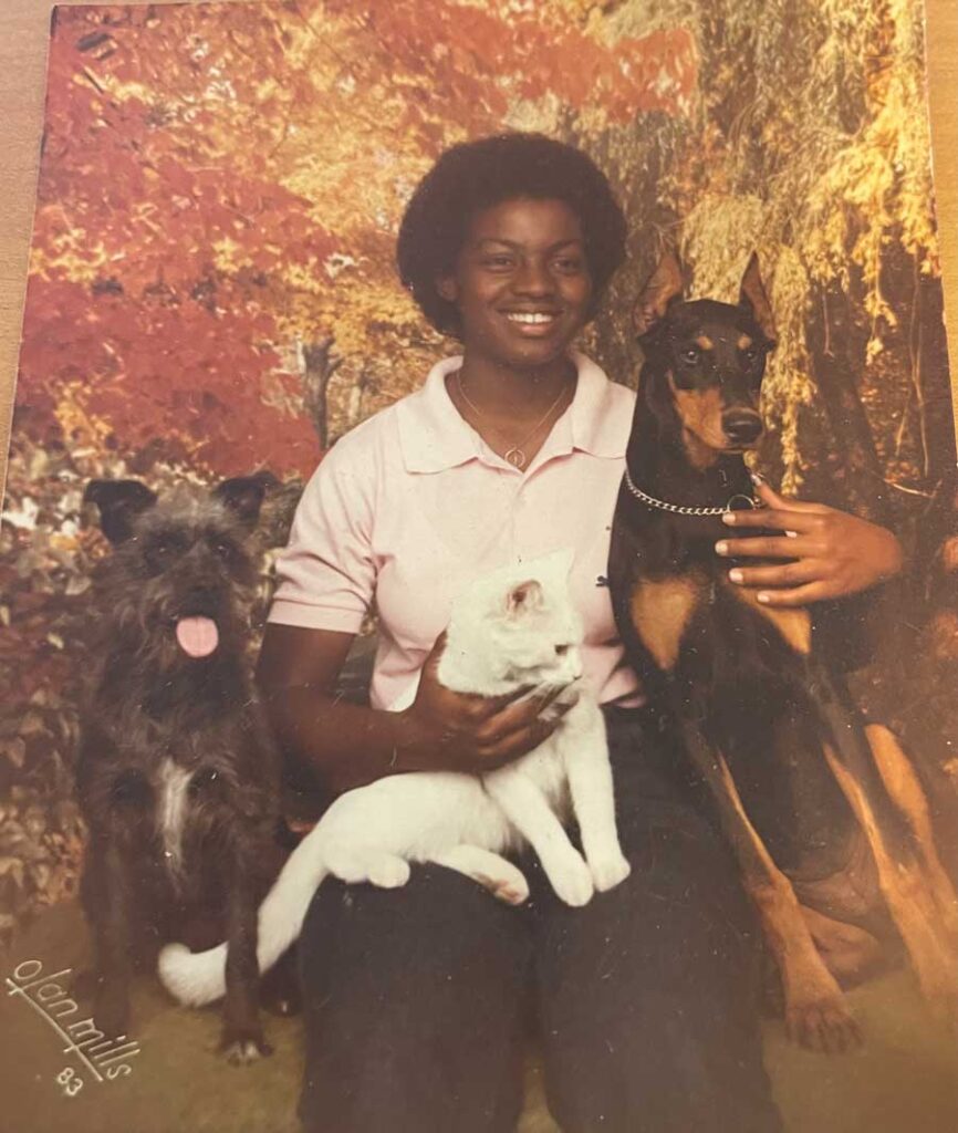 I have had dogs all my life. My first dog was an awesome shaggy mutt named Jet. We grew up together and she started me on my journey. She was smart and sweet. We spent many hours together. I started training when Jet and I were about 10. We got Queenie, a Shepard mix puppy, and a year later JoJo, an adult Chow mix, who was given to us due to his bad behavior. I started with walking on leash and jumping and then advanced to pulling my wagon. I even trained the kitten that wandered into our lives to hunt and use the toilet.